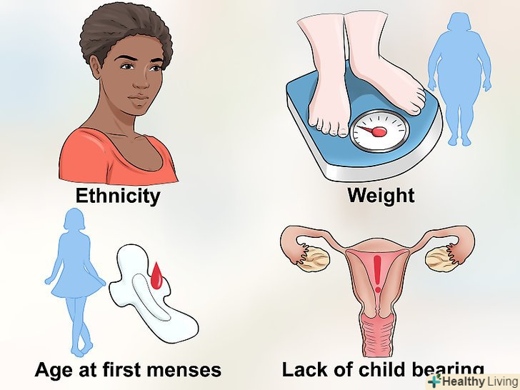 Оцініть свої фактори ризику.існують певні фактори ризику, які збільшують ймовірність розвитку міоми матки. До факторів ризику, що збільшують шанси виникнення міоми, відносяться:[4]- Етнічна або расова приналежність: афроамериканські жінки набагато більше схильні до розвитку міоми матки і при цьому вони можуть захворіти нею в юному віці. Крім того, на відміну від інших жінок, у афроамериканок ризик розвитку міоми з віком тільки збільшується.