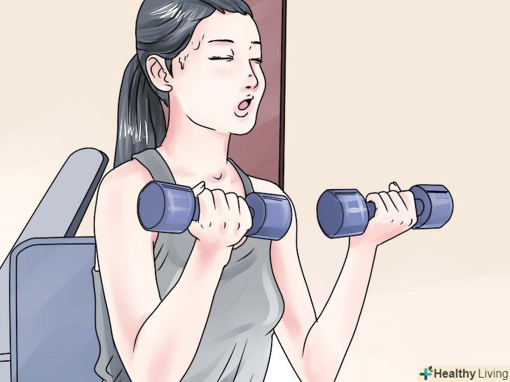 Займіться підняттям ваг.один з позитивних моментів в менструації це те, що протягом декількох днів внаслідок викиду гормонів ваша больова витривалість зростає. Таким чином те, що зазвичай вам було б важко виконати, під час менструації буде трохи легше здійснити. Виконуйте ваші звичайні вправи з підйому ваг, або скористайтеся вашої підвищеної сприйнятливості до болю і навантажите трохи руки і ноги. Слід пам'ятати, що не потрібно різко збільшувати навантаження.- Уникайте вправ на підйом ваг, які б напружували вашу спину і живіт, так як під час менструації це може принести вам дискомфорт.