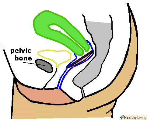 - Знайдіть шийку матки.вставте палець в піхву і знайдіть шийку матки, яка на дотик схожа на кінчик носа. Це невелике, м'яке потовщення з поглибленням в середині. Для того, щоб чаша використовувалася належним чином, вона повинна бути прикріплена до задньої частини шийки матки, тому Ви повинні приблизно знати, де вона знаходиться.