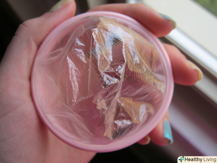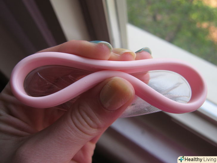 Стисніть рожевий ободок, так щоб він змінився від повної круглої форми в більш стержнеобразную.- Вставте чашу.розсуньте ваші статеві губи і знайдіть отвір піхви іншою рукою. Тепер направте чашу назад до куприка, не прямо вгору. Направте чашу туди, де, як ви думаєте, знаходиться шийка матки, що, ймовірно, наскільки далеко, наскільки ви можете ввести її.