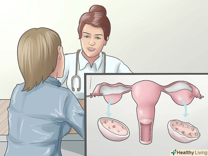 Запитайте лікаря про синдром полікістозних яєчників.при полікістозі яєчників лікар призначає ультразвукове дослідження. При УЗД може бути виявлено 12 і більше кіст в яєчниках, кожна з яких 2-9 міліметрів в діаметрі.- У деяких випадках може знадобитися хірургічне видалення кіст.