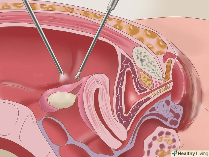Дізнайтеся у лікаря про лапароскопії.щоб підтвердити наявність ендометріозу, лікар може запропонувати вам лапароскопію. Це хірургічна процедура, в якій лапароскоп (невеликий медичний інструмент для обстеження внутрішніх органів) вставляється через розріз черевної стінки. Можна зробити біопсію, щоб дослідити зразки вашої тканини.- Лапароскопія робиться під загальним наркозом, тому лікарі несуть повну відповідальність за такий вид хірургічного втручання. Тому якщо ваші симптоми слабо виражені, лікар може запропонувати спочатку спробувати інші процедури перед тим, як відправляти вас на операцію.