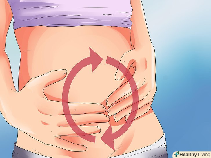 Масажуйте живіт, щоб зменшити біль.масажуйте передню частину живота, просуваючись до нижньої частини спини. Попросіть друга або члена сім'ї масажувати нижню частину спини, якщо це можливо.