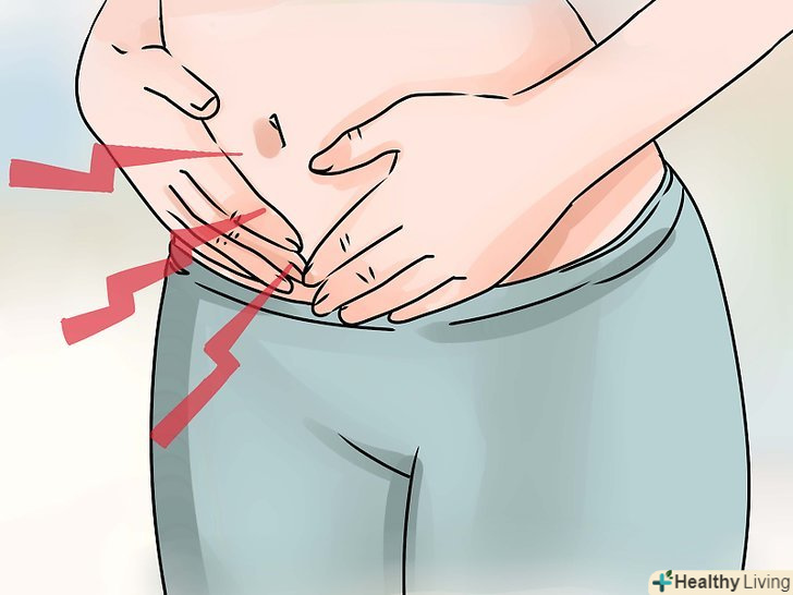 Зверніть увагу на симптоми з боку травної системи.напередодні менструації можливе здуття живота, запор, затримка рідини в організмі і діарея. Це може призводити до збільшення ваги на початку циклу.[21] всі ці симптоми також повинні пройти в перші 4 дні після початку менструації. Якщо цього не відбувається, зверніться до лікаря.- Обмежте вживання солі і їжте частіше маленькими порціями, щоб позбутися від здуття живота і затримки рідини в організмі.[22]