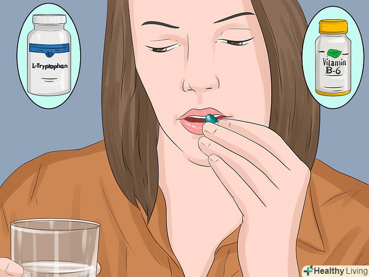 - L-триптофан має схожу дію.[22] однак застосування L-триптофану пов'язане з певними ризиками. Можливі побічні ефекти: затуманеність зору, запаморочення, сонливість, втома, свербіж шкіри голови, висип, нудота, надмірне потовиділення, тремор. Не приймайте цей препарат без консультації лікаря.[23]