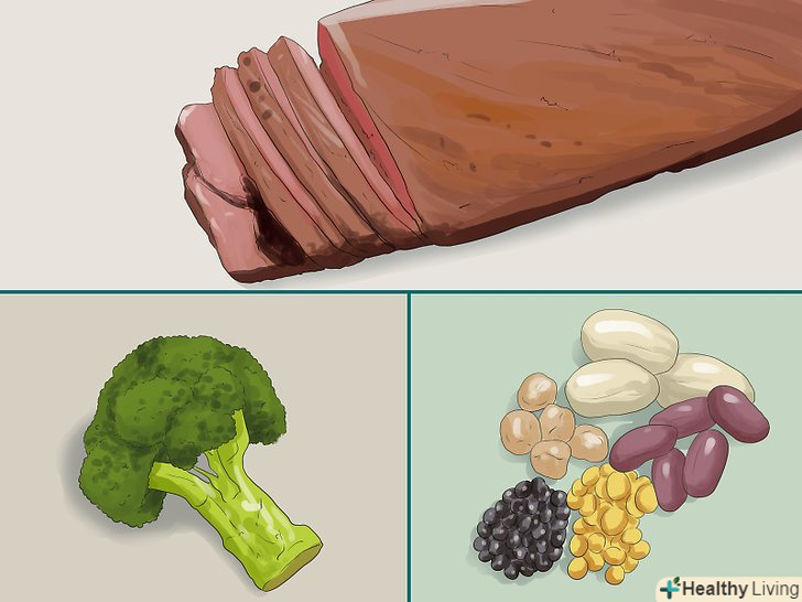 Не допускайте анемії.іноді крововтрата і погане харчування призводять до залізодефіцитної анемії, яка викликає сильну слабкість. Анемія можлива при міомах в матці, що провокують сильну крововтрату, і при поганому харчуванні.[6]- Багато заліза міститься в яловичині, темно-зелених листових овочах, квасолі та інших бобових. Ці продукти допоможуть не допустити анемії, обумовленої неякісним харчуванням.