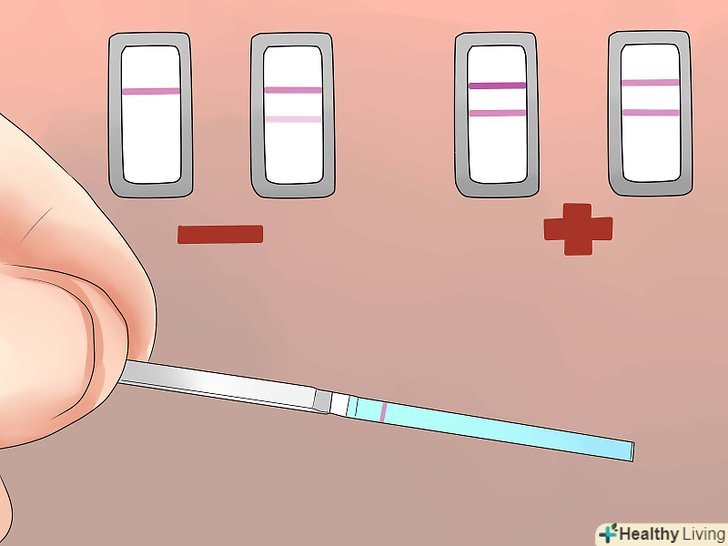 Проаналізуйте тест.Помочіться на паличку і почекайте, поки в тестовому віконці не з'явиться Нова лінія. Лінія, така ж темна, як і існуюча контрольна лінія, говорить про те, що у вас, ймовірно, овуляція. Слабка лінія не є надійним показником.- Тести на овуляцію точно визначають рівень ЛГ в сечі, але сплеск ЛГ триває близько 24-48 годин, даючи вам невеликі часові рамки для його виявлення. Рекомендується використовувати кілька методів для відстеження овуляції.