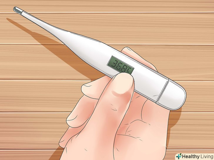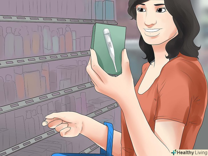 Вимірюйте температуру щодня.необхідно вимірювати температуру кожен день в один і той же час, так як вона коливається протягом дня. В ідеалі її потрібно вимірювати вранці після як мінімум п'ятигодинного сну, ще до того як ви встанете з ліжка.[5] записуйте температуру до1/10 градуса. У своєму календарі використовуйте точку або інший символ, щоб відзначити дні, коли на вимірювання могли вплинути інші фактори, наприклад, хвороба, неспокійний сон і прийом жарознижуючих, наприклад, аспірину, тайленолу або мотріна.[6]- Середня температура жіночого тіла становить 35,6-36,7 ºC до овуляції і 36,1-37,2 ºC після овуляції. Якщо ви отримуєте результати, які значно відрізняться від цього діапазону, прочитайте інструкції з експлуатації термометра, щоб переконатися, що ви правильно його використовуєте.