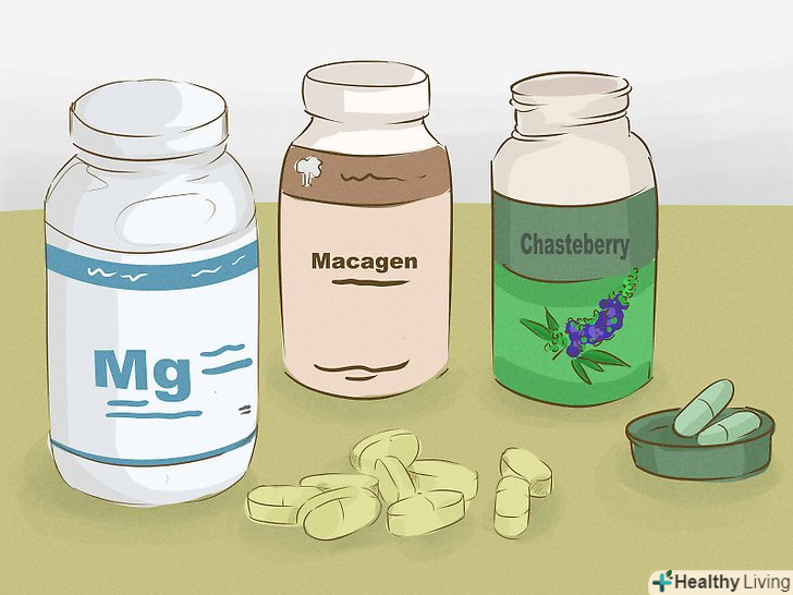 Зверніться до лікаря-натуропату, щоб він підказав будь-які харчові біодобавки.деякі харчові біологічні активні добавки (наприклад, Вітекс священний, корінь маки перуанської " Macagen» і магній) зменшують менструальні болі, якщо приймати їх тривалий час. Щоб користь таких препаратів була помітна, їх необхідно приймати регулярно і досить тривалий час. Обговоріть з лікарем-натуропатом, якщо вам цікаві подібні способи лікування.