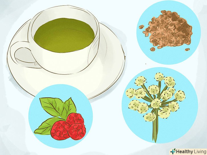 Випийте гарячого чаю.гарячий чай, впливаючи своїм теплом, також може зменшувати менструальні болі. Деякі типи трав'яних чаїв відомі тим, що розслабляють матку і позбавляють від хворобливих спазмів. Заваріть собі будь-який з наступних видів чаю:- Малиновий лист-знімає м'язові спазми.[7]