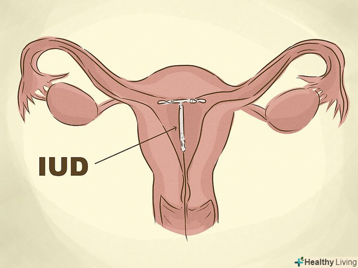 Встановіть ВМС Мірена.[13] внутрішньоматкова спіраль (ВМС) Мірена – це спеціальний пристрій, який вставляється безпосередньо в матку. Вона не тільки діє як засіб контрацепції, але і допомагає при рясних і хворобливих менструаціях. Багато жінок відзначають, що менструації майже зникають тоді, коли вони використовують ВМС Мірена (кровотеча і болі стають мінімальними, а у деяких зовсім пропадають). Установка ВМС може коштувати дорого (обов'язково обговоріть з лікарем вартість спіралі і її установки), але при цьому спіраль має довгострокову дію: в більшості випадків ВМС ефективні 5 років.- Установка ВМС Мірена є одним з найбільш ефективних довгострокових способів позбавлення від хворобливих менструальних спазмів.