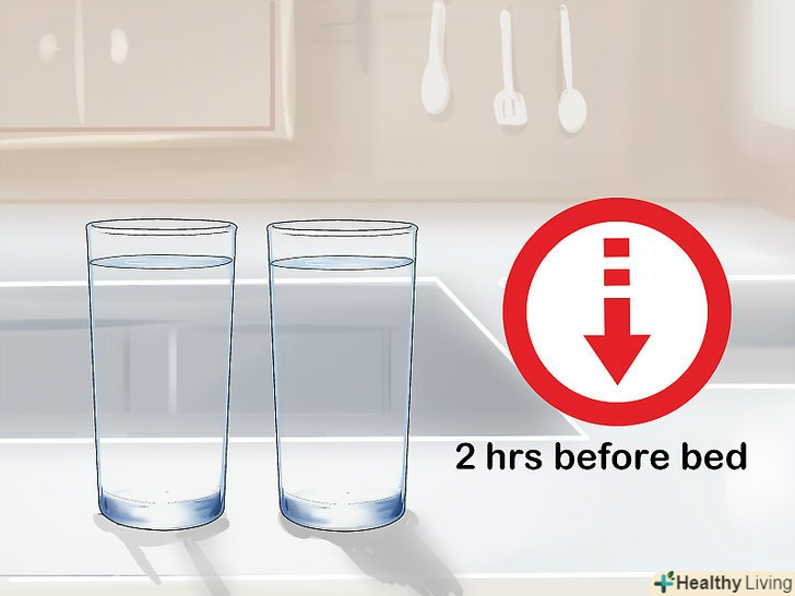 Скоротіть споживання рідин за 2 години до сну.не варто пити багато рідини ввечері, незадовго до відходу до сну. Якщо ви будете лягати спати з порожнім сечовим міхуром, то уникнете дискомфорту в цій області і частих позивів протягом ночі.[4]- Збільште споживання рідини в першій половині дня, щоб обов'язково випивати свою денну норму.