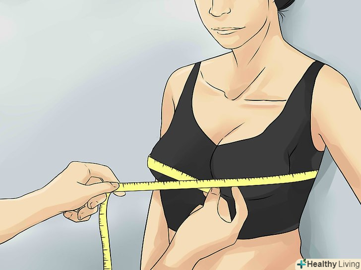 Зверніться до консультанта магазину нижньої білизни з проханням визначити ваш розмір.незважаючи на те, що для бюстгальтера можна зняти мірки у себе вдома, непогано буде звернутися за допомогою до консультанта магазину нижньої білизни в разі покупки першого бюстгальтера або просто для того, щоб вам підібрали найбільш підходящий розмір. Коли зайдете в магазин, скажіть консультанту, що вам необхідно визначити свій розмір бюстгальтера. Вас направлять в примірювальну і знімуть дві мірки: обхват під грудьми і обхват грудей по самим виступаючим точкам. Перша мірка визначає розмір " пояса "бюстгальтера, а різниця між першою і другою міркою впливає на розмір"чашок".[4]- Обхват під грудьми в сантиметрах визначає перший числовий показник розміру бюстгальтера (наприклад, 70, 75, 80 і так далі).