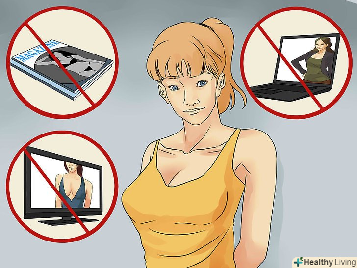 Пишайтеся змінами свого тіла.розвиток грудей-це не те, що можна приховувати тривалий час. Дуже ймовірно, що на це крім вас незабаром почнуть звертати увагу і інші люди. Через подібних змін ви можете відчувати стрес і невпевненість, супроводжувані думками про те, що ж думають про вас оточуючі. Знайте, що такі переживання абсолютно нормальні.[12]- Постарайтеся не порівнювати себе з дівчатами з телебачення або з інтернету. Не зіставляйте себе з рекламними зображеннями. Фотографії моделей в рекламі нереалістичні і в більшості випадків є результатом обробки в Photoshop. Не варто прагнути бути схожою на когось ще, крім самої себе.