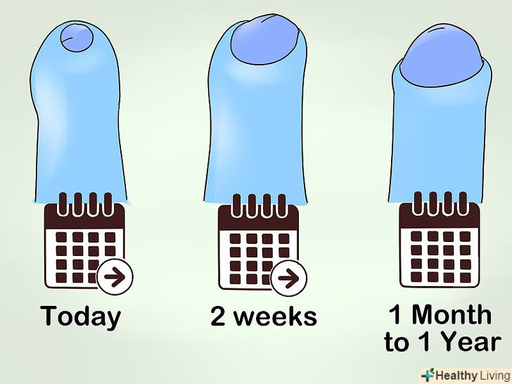 Запасіться терпінням.чекати, поки крайня плоть розтягнеться, може бути нелегко! Але пам'ятайте: квапити події не варто. Як правило, перші зміни бувають помітні через два тижні щоденних розтягувань. Залежно від початкового стану вашої шкіри, на позбавлення від фімозу може піти від місяця до року.[13]