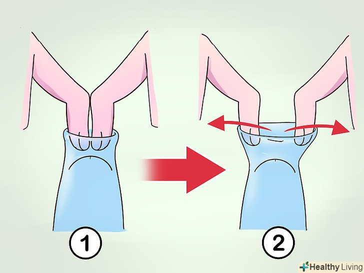 Розтягніть шкіру двома пальцями.як тільки ви зможете ввести в отвір крайньої плоті два пальці, це означає, що ви вже близькі до її розтягування до необхідного розміру. Щоб розтягнути кільце крайньої плоті, використовуйте два пальці. Введіть Пальці в отвір крайньої плоті тильною стороною один до одного. Наголошуючи пальці один в одного, акуратно розтягніть шкіру в протилежні сторони. Відпустіть і повторіть.[3]- Не забудьте вимити руки.