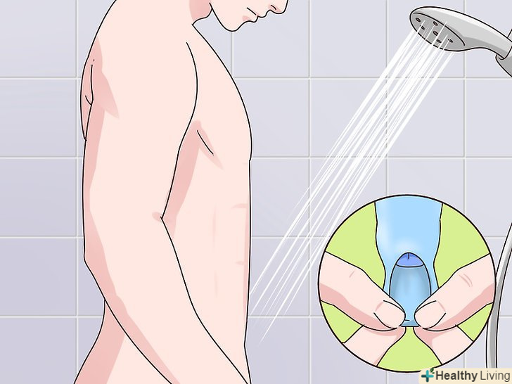 Спробуйте виконувати розтягування під час прийняття душу.іноді розтягування крайньої плоті може бути утрудненим і болючим. Тепла вода може полегшити цей процес. Спробуйте посидіти в теплій ванні або прийняти довгий гарячий душ. Тепла вода не тільки допоможе вам розслабитися, але в поєднанні з вологістю також може розпарити шкіру і допомогти їй розтягнутися.[5]- Невелика кількість мила, нанесена для змащення на шкіру, може зменшити тертя пальців об шкіру крайньої плоті. Закінчивши процес, не забудьте змити залишки мила.