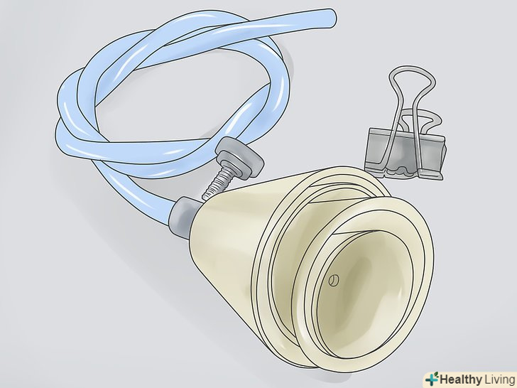 Використання предметів домашнього вжитку.як альтернатива, замість покупки дорогих пристроїв, ви можете зробити власні, використовуючи прості предмети домашнього вжитку. Найбільш поширені з них, це туби від таблеток, плівкові балончики, глибокі розетки і наконечники тромбону.- Тюбики від таблеток і плівкові балончики: відрізавши від балончиків або тюбиків циліндр розміром 35 мм, можете натягнути шкіру основи на пластмасу і скріпити стрічкою в потрібному місці. Прикріпивши провід, можна застосувати натяг за допомогою гумки, зав'язаної навколо коліна або ноги. Якщо наповнити і обмотати циліндр ватою, може також застосувати "внутрішнє" натяг.