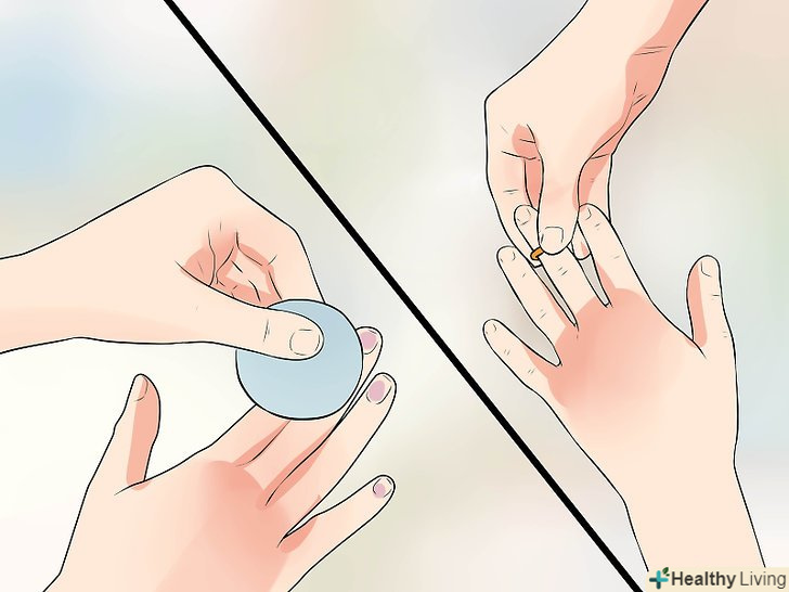 Зніміть прикраси і змийте лак з нігтів.прикраси можуть завдати вам шкоди або заплутатися в інструментах в операційній.[39]- Для зупинки кровотечі під час операції може застосовуватися електрокаустика (припікання електрикою). Ваша шкіра може постраждати через прикраси, оскільки інструмент для припікання виробляє електрику.[40]