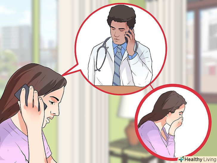 Якщо вдома у вас розвинуться серйозні ускладнення, зв'яжіться з лікарем.важливо звернутися за допомогою якомога швидше, якщо у вас відкриється сильна вагінальна кровотеча, виникне сильний біль в животі, якщо вас постійно буде нудити і рвати, якщо ви будете відчувати сильну спрагу або у вас буде підвищено потовиділення, якщо виникнуть труднощі з сечовипусканням і випуском газів. До небажаних симптомів також відносяться істотне здуття живота і / або запор, виділення рідини, крові і почервоніння навколо місць надрізу.[45]- Якщо у вас сильна вагінальна кровотеча, яка вимагає використання більше однієї прокладки на годину, в поєднанні з болем в животі, це може говорити про кровотечу в місці операції на трубах. Спрага і посилене потовиділення також вказують на кровотечу. Пийте більше рідини, оскільки вашому організму потрібно відновлювати втрату рідини через кровотечу. Потовиділення-це реакція організму на стрес, викликаний втратою крові. телефонуйте в швидку допомогу, Якщо будете почувати себе дуже погано.[46][47]