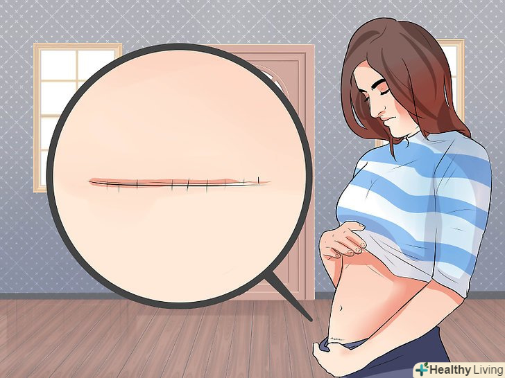 Доглядайте за раною, дотримуючись рекомендацій лікаря.Рана повинна бути сухою і чистою, інакше вона не буде гоїтися. На рані не повинно бути ознак інфекції (сочиться крові, почервоніння), і температура тіла не повинна перевищувати 38 градусів.- Посилюється біль в животі і лихоманка можуть бути ознаками інфекції в черевній порожнині. Покажіться лікаря, щоб він оглянув вас, призначив аналізи, обстеження і лікування.[51]