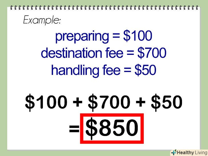 Додайте до загальної вартості автомобіля збори, що стягуються в автосалоні, які включають в себе підготовку автомобіля до продажу, збір за доставку автомобіля від заводу-виробника до дилера, або збір за обслуговування кредиту.