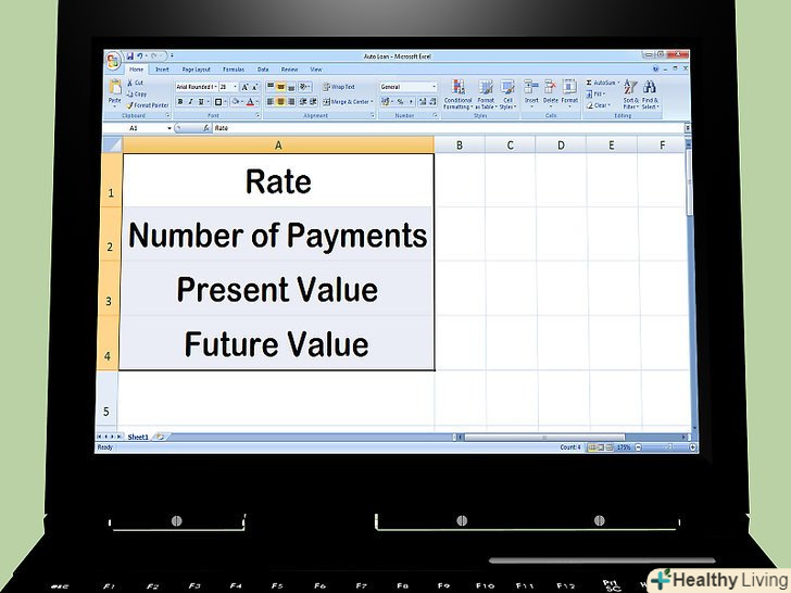Відкрийте програму MS Excel і введіть наведені нижче умовні позначення в перші 4 комірки стовпця а:- Процентна ставка