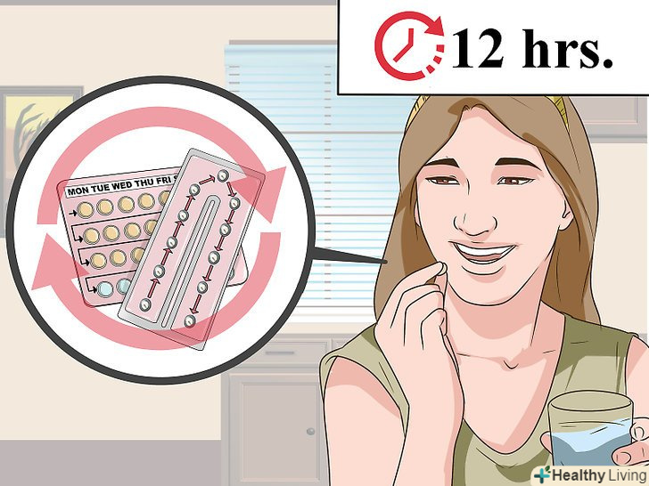 Прийміть подвійну дозу.після того, як ви з'ясуєте, скільки таблеток вам потрібно прийняти, випийте подвійну дозу. Другу дозу потрібно випити протягом 12 годин після першої. Цей спосіб запобігання небажаної вагітності вважається безпечним і ефективним.[32]- Першу дозу необхідно прийняти не пізніше 5 днів (або 120 годин) після незахищеного сексу.