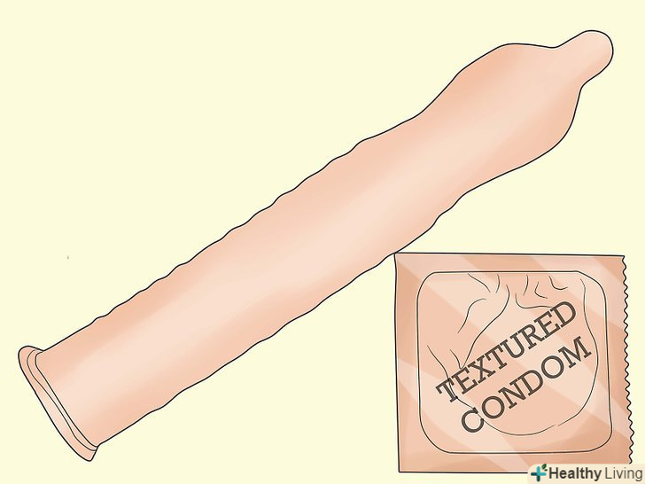 Визначтеся з відповідною текстурою презерватива.деякі люди люблять використовувати презервативи, які майже не відчуваються, тоді як інші отримують задоволення від використання ребристих презервативів або презервативів з пухирцями. Презервативи з будь-якою текстурою однаково ефективні, тому ваш вибір повинен бути заснований повністю на ваших особистих перевагах.- Якщо це ваш перший сексуальний досвід з даним партнером, найкраще придбати презервативи без пухирців. Коли ви дізнаєтеся краще переваги один одного, можна буде спробувати різні текстури.