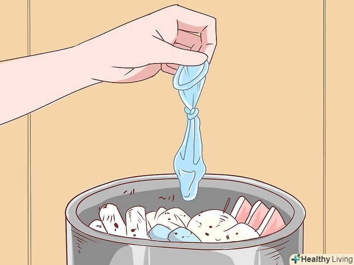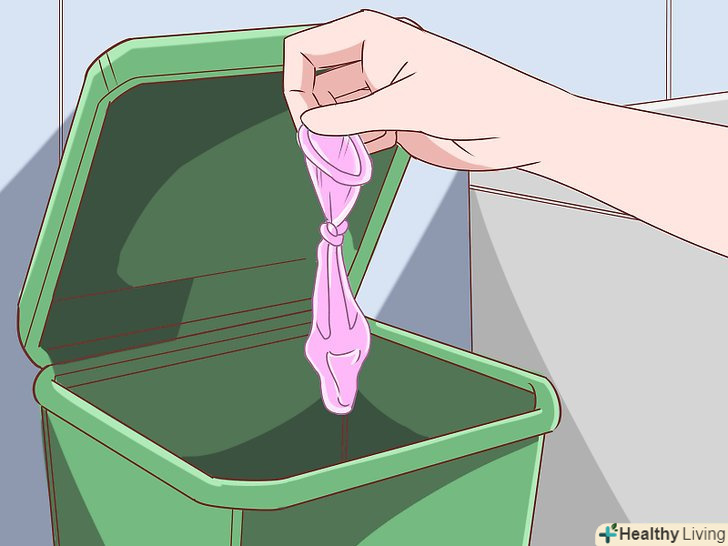 Викиньте використаний презерватив.Вам слід викинути презерватив у відро для сміття. Ні в якому разі не змивайте його в унітаз.[2] це небезпечно як для каналізаційної системи, так і для навколишнього середовища. Існує багато прийомів щодо того, яким саме чином можна викинути презерватив.- Наприклад, можна зав'язати вузлом вхідний отвір презерватива. Це не дасть пролитися насінної рідини. Потім презерватив слід загорнути в Туалетний папір або в серветку і викинути у відро для сміття.