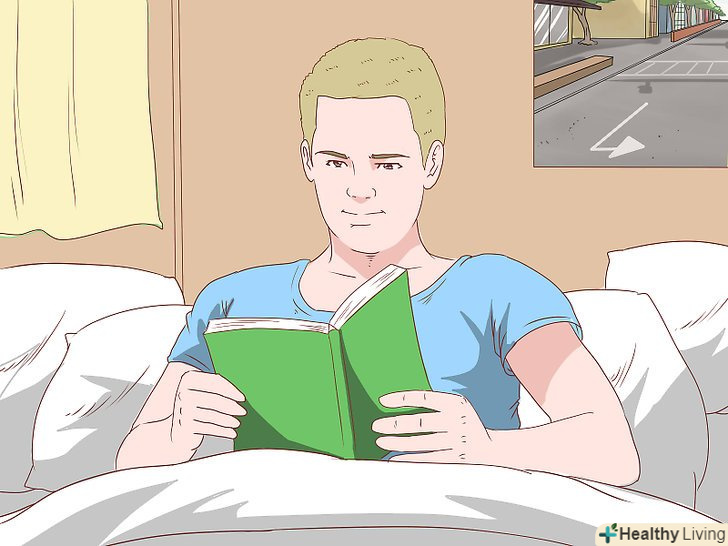 Спонукайте людину займатися улюбленою справою перед сном.замість того щоб відразу вимикати світло і лягати в ліжко, Запропонуйте Близькому зайнятися тим, що йому подобається, за умови, що це захоплення буде розслаблюючим. Це допоможе йому швидше заснути. Розслаблюючі заняття зменшують стимуляцію мозку, що сприяє сну.[1]- Спонукайте Близького почитати протягом півгодини перед сном.