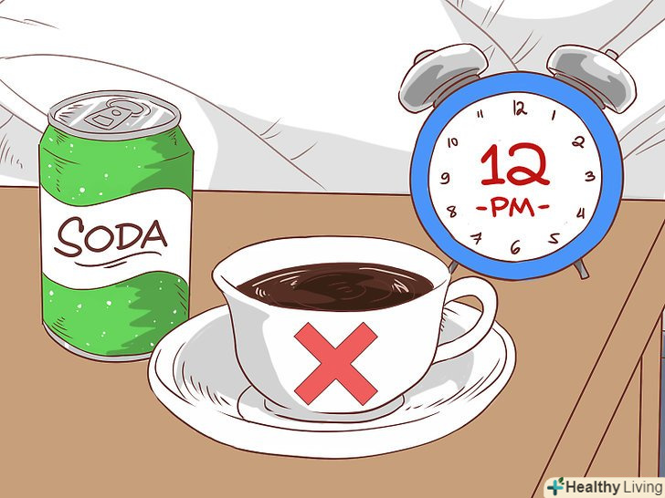 Спонукайте людину зменшити споживання кави і жирної їжі.кава та інші напої, що містять кофеїн, такі як содова, енергетичні напої, чай і гарячий шоколад є стимуляторами. Людині важко буде заснути, якщо він вживає такі напої в післяобідній час. Якщо у когось із ваших близьких проблема зі сном, причиною цього може бути вживання напоїв, що містять кофеїн. Попросіть близьку людину припинити пити кофеїновмісні напої до 12: 00 дня. Скажіть йому про те, що дія кофеїну триває від чотирьох до семи годин.[3] подібним чином жирні і солодкі продукти можуть викликати розлад шлунка і болі в животі. Через це людині складно буде заснути.- Запропонуйте людині поступово зменшувати споживання кофеїновмісних напоїв. Наприклад, якщо він п'є три чашки кави в день, протягом тижня спонукайте його зменшити обсяг до двох з половиною, а потім через тиждень попросіть його пити не більше двох чашок кави в день.