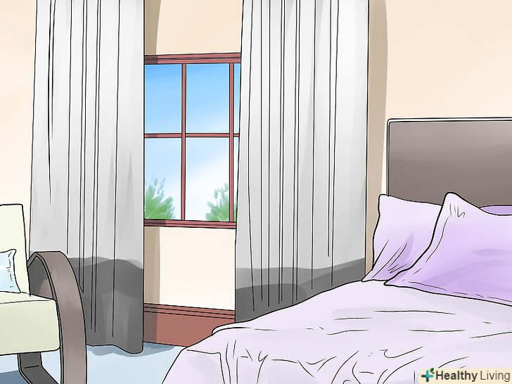 Впустіть сонячне світло.у вашій кімнаті є природне світло вранці? Якщо ні, то ви відмовляєте собі в найефективнішому будильнику. Коли сонце пробивається через ваші вікна вранці, ваш мозок природним чином дізнається, що прийшов час рухатися. Але ваші штори щільно закриті і ви не отримуєте достатню кількість світла вранці, ви будете хитатися до тих пір, поки не вийдете на вулицю. [2]- Якщо у вас щільні штори, які не пропускають світло з вулиці, спробуйте купити фіранки нейтральних кольорів, які ефективно блокують більшу частину штучного освітлення, але роблять вашу кімнату світлою, коли встає сонце.
