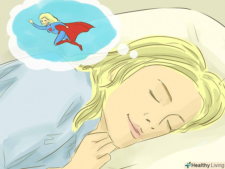 Думайте про хороше.поки ви занурюєтеся в сон, намагайтеся думати про хороше. Цим може бути все, що Вам подобається. Наприклад, спробуйте представити себе супергероєм, що рятує світ, знаменитим актором або актрисою або як Ви вирушаєте на відпочинок своєї мрії. У той же час, це допоможе вам зосередитися на досягненні своїх цілей, представляючи їх уві сні, наприклад, отримання роботи, яку ви завжди хотіли, досягнення ідеальної фігури або знаходження справжньої любові.