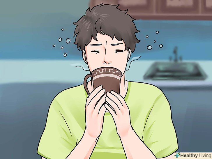 Випийте трохи води, як тільки прокинетеся, це стимулює ваше тіло і допоможе не заснути.якщо вам потрібно що-небудь міцніше, спробуйте випити кави або чай.[11]- Якщо ви не можете вийти зі спальні без чашки кави, поставте кавоварку в спальню і встановіть таймер так, щоб чашечка кави чекала, коли ви прокинетеся.