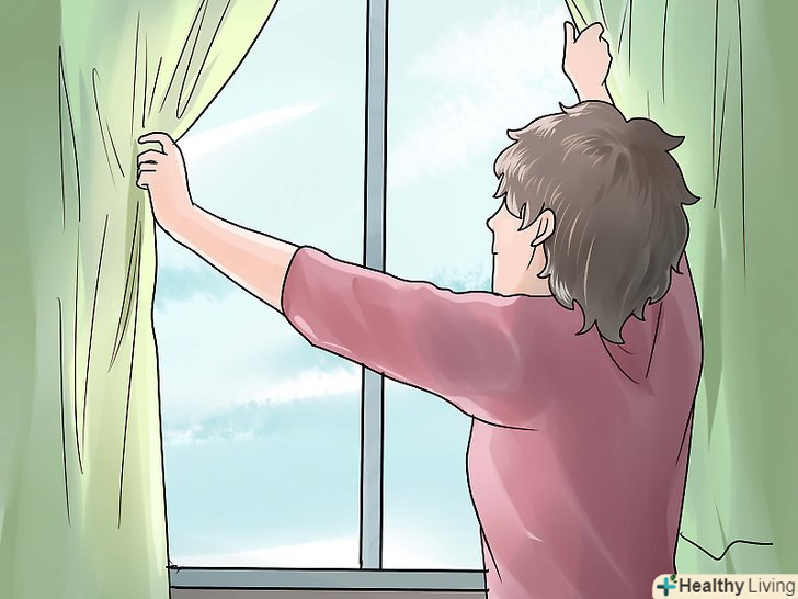 Освітіть вашу спальню.тіло зазвичай прокидається швидше, якщо зовні світло.[8] залиште штори відкритими і використовуйте сонце, щоб легше прокинутися.- Якщо вам потрібно прокинутися, коли ще темно, або якщо ви живете в похмурому і хмарному місці, використовуйте таймер на лампі у вашій спальні або купіть коробку зі світлом або симулятор зорі.