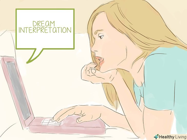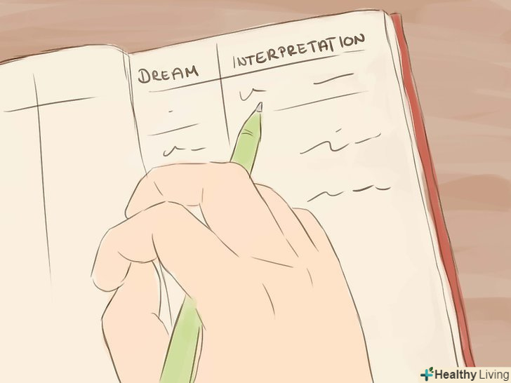 Почніть Інтерпретувати сни.не переживайте, якщо відразу вам не захочеться аналізувати сни. Ви все ще звикаєте записувати сни, і на початку найголовніше — це зафіксувати події і образи. Ви завжди зможете повернутися до записів і спробувати витлумачити сновидіння, якщо вам вдалося записати всі ключові елементи сну. Згодом спробуйте інтерпретувати сни, використовуючи сонники, спеціальні книги, сайти, і за допомогою своєї інтуїції. Деякі речі буде складно аналізувати, але ви можете хоча б спробувати зробити це.[10]- Часом значення сну стає зрозуміло тільки в тому випадку, якщо цей сон повторюється. Можливо, сни говорять про те, що вам потрібно приділити особливу увагу чогось, що відбувається у Вашому житті. Сни нерідко повторюються для того, щоб людина змогла зрозуміти це.