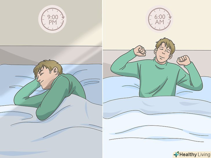 Дотримуйтеся регулярного графіка сну.лягайте спати щоночі і прокидайтеся щоранку в один і той же час. Дотримуйтесь свій режим сну навіть на вихідних, не засиджуйтеся допізна і не спіть довше звичайного.- Організм функціонує відповідно до різних поведінкових шаблонів і звичками. Підтримуючи їх, ми сприяємо регуляції різних хімічних, гормональних і фізичних циклів. Час відходу до сну, час пробудження і тривалість сну створюють ключову структуру режиму сну. Дотримуючись єдиного режиму сну, людина дозволяє організму більш точно регулювати свою роботу під час сну.
