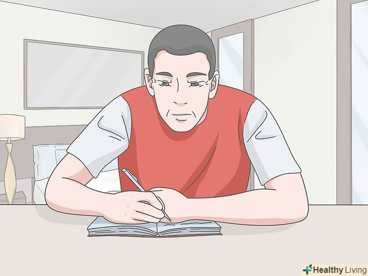 Ведіть щоденник сну.безпосередньо перед першим відвідуванням лікаря або відразу після нього почніть вести щоденник сну, щоб простежити за своїми звичками. Через два тижні вивчіть щоденник разом з лікарем, щоб виявити можливі причини розмов уві сні.[5]- Записуйте час, в який ви лягаєте в ліжко, коли приблизно засинаєте і прокидаєтеся.