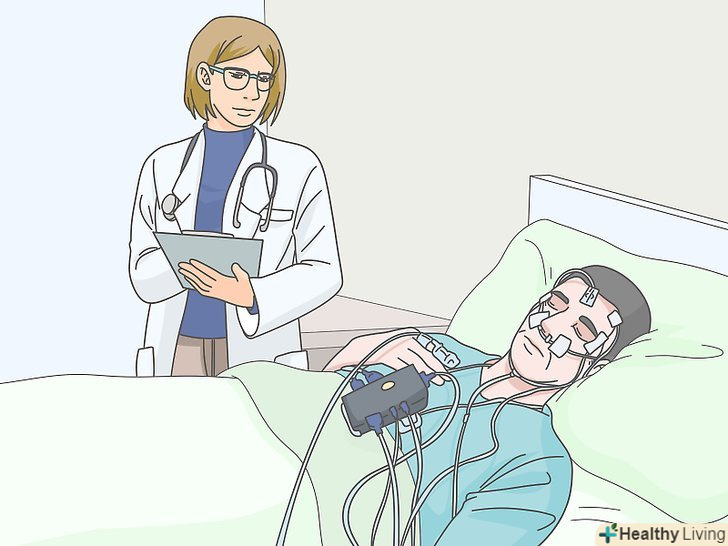 Пройдіть дослідження сну.фахівець з проблем сну може вдатися до дослідження сну або полісомнографії, щоб простежити за вашим мозком і організмом під час сну. Таке дослідження дозволить лікарю діагностувати порушення сну, які викликали вашу проблему.- У більшості випадків фахівець з проблем сну використовує результати діагностичної нічної полісомнографії для визначення причин сомнілоквії. Під час дослідження буде використано спеціальне обладнання для контролю характеру дихання, рівня насиченості крові киснем, серцевих ритмів і руху кінцівок. Також буде вивчено загальну якість сну.[7]