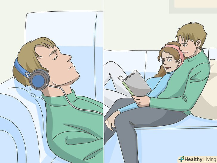 Розслабляйтеся перед сном.виконуйте такі дії, які дозволять максимально зняти напругу. Навіть якщо ви цього не усвідомлюєте, в організмі зазвичай зберігається така кількість напруги, яке перешкоджає нормальному сну.- Прийміть теплу ванну з піною або послухайте спокійну музику. Почитайте книгу, займіться медитацією, помоліться або притисніться до коханої людини. Підійде будь-яка дія, яка допомагає відразу розслабитися.