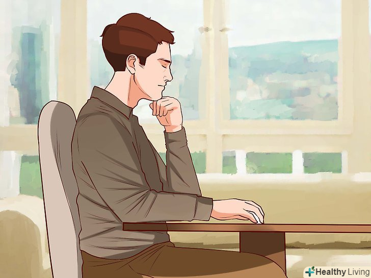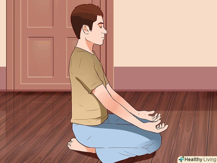 Влаштуйтеся зручніше.постарайтеся сісти прямо. Багато людей медитують в позі лотоса. Але ви можете сісти в будь-якій позі, яка вам більше подобається. Головне-підтримувати нормальну поставу. Ви можете сидіти на стільці, на колінах або навіть просто лягти. Руки повинні бути розслаблені, покладіть їх на коліна.[20]- Деяким людям допомагають розслабитися ароматичні свічки або палички. Не соромтеся, спробуйте все, що допомагає вам розслабитися.[21]
