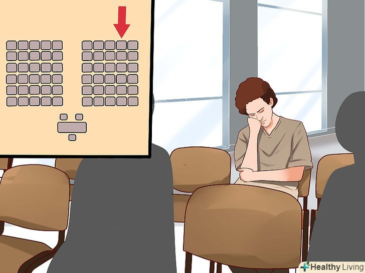 Сядьте ззаду.не завжди випаде можливість знайти відокремлене місце. Якщо вам обов'язково потрібно йти на навчання або роботу, а ви просто знесилені, постарайтеся зайняти місце в одному з останніх рядів, подалі від оратора або викладача. Так ви забезпечите собі місце для відпочинку, але не попадетеся. Якщо ви знаходитесь в кінці приміщення, навряд чи хтось помітить, що у вас закриті очі. [6]