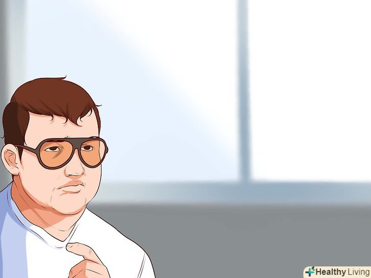 Носіть сонцезахисні окуляри.якщо ви відчуваєте, що ось-ось почнете клювати носом, надіньте сонцезахисні окуляри. Ніхто точно не зрозуміє, що у вас закриті очі. А ще темні лінзи зроблять сон більш продуктивним. [7]- Якщо у вас немає сонцезахисних окулярів, надіньте капелюшок або кепку, щоб можна було трохи натягнути її на лоб, тоді поля капелюшки будуть закривати очі, і ви зможете трохи подрімати.