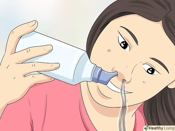 Приймайте протинабрякові засоби або промивайте носові проходи, якщо у вас закладені пазухи носа.при закладеному носі блокуються дихальні шляхи, що може викликати хропіння. Безрецептурні Протинабрякові препарати допомагають позбутися від закладеності носових пазух. Ще один ефективний спосіб полягає в тому, щоб перед сном промивати носові проходи сольовим розчином.[11]- Для промивання носа необхідно використовувати стерильний сольовий розчин, який можна придбати без рецепта в аптеці або приготувати самостійно. Щоб приготувати розчин в домашніх умовах, використовуйте дистильовану або бутильовану воду.