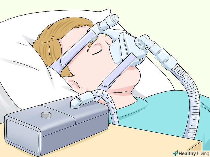У разіАпное уві сні придбайте апарат для штучної вентиляції легенів постійним позитивним тиском (СІПАП).апное уві сні є серйозним захворюванням, для успішного лікування якого потрібна медична допомога. При апное уві сні пацієнт перестає дихати посеред ночі, причому іноді дихання може бути відсутнім протягом декількох хвилин. Це не тільки перериває сон, але і становить загрозу для життя. Можливо, лікар порекомендує вам використовувати СИПАП апарат, який полегшить дихання під час сну.[17]- Слід використовувати СИПАП апарат щоночі і дотримуватися вказівок лікаря щодо його застосування.