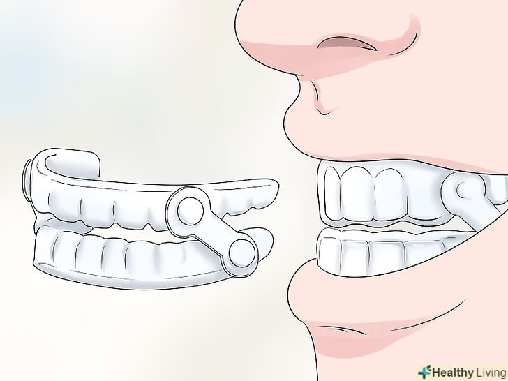 Щоб полегшити хропіння, замовте капу від хропіння.стоматолог зможе зробити капу, яка буде злегка зміщувати вперед нижню щелепу і мову і тим самим розкривати дихальні шляхи. Такі капи ефективні, але досить дорогі. Капи від хропіння на замовлення можуть коштувати кілька десятків тисяч рублів.[19]- Можна підібрати більш дешеву готову капу в аптеці, хоча вона буде не настільки ефективна, як зроблена на замовлення.