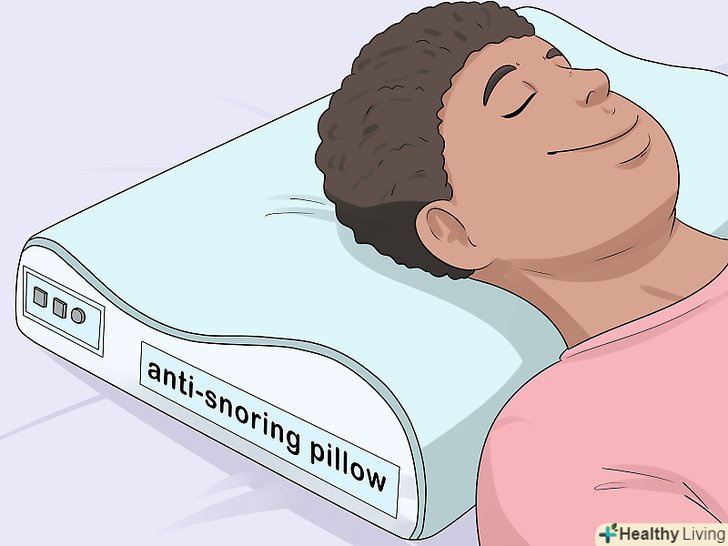 Використовуйте спеціальну подушку від хропіння.деякі вважають, що такі подушки допомагають зменшити хропіння.[4] є кілька різновидів подібних подушок: похилі подушки, подушки для підтримки шиї, Контурні подушки, подушки з піни з пам'яттю і подушки від апное уві сні. Пошукайте відповідну вам подушку від хропіння.[5]- Подушки від хропіння допомагають не всім.
