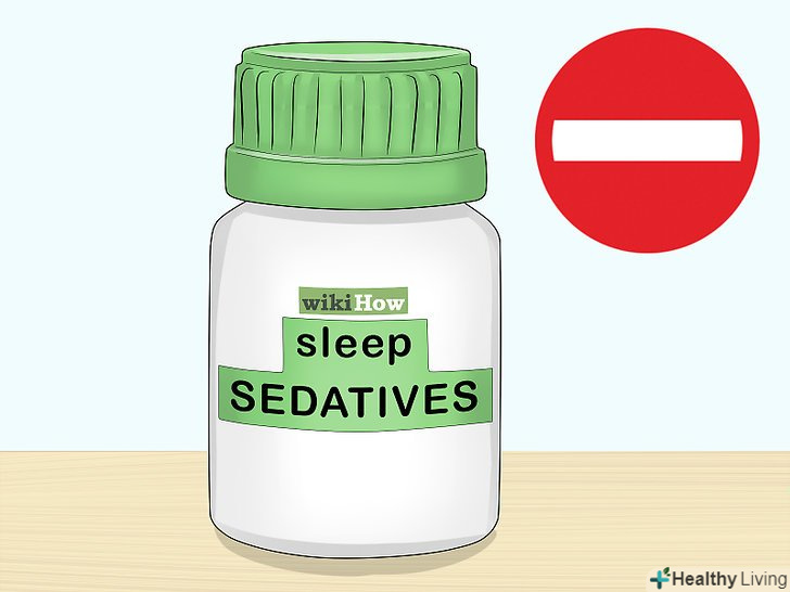 Обмежте використання седативних засобів.седативні засоби розслаблюють центральну нервову систему і м'язи горла. Це сприяє посиленню хропіння. Утримуйтеся від седативних засобів, щоб знизити ймовірність хропіння.[7]- Якщо вам складно заснути, спробуйте дотримуватися певногорозпорядку сну.