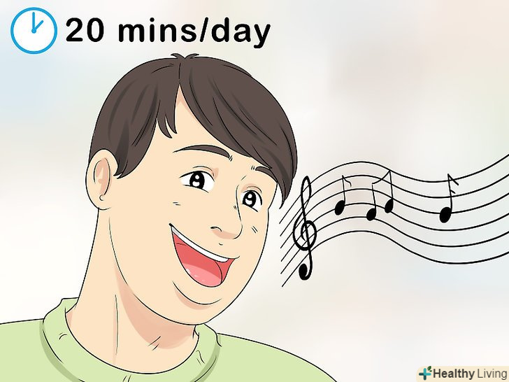 Співайте по 20 хвилин в день, щоб зміцнити м'язи горла.хропіння може бути пов'язаний зі слабкістю м'язів горла, тому їх зміцнення допоможе вам позбавитися від неприємних симптомів. Спробуйте займатися співом хоча б по 20 хвилин в день, щоб зміцнити м'язи горла.[8]- Можна також грати на духовому інструменті, наприклад на гобої або валторні.[9]